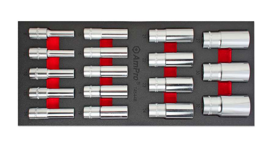 Приобрести T45448 Набор головок удлиненных 1/2" (8-32мм) 17пр., в мягком ложементе от компании AmPro (Тайвань) из раздела Ложементы мягкие (VA серия)