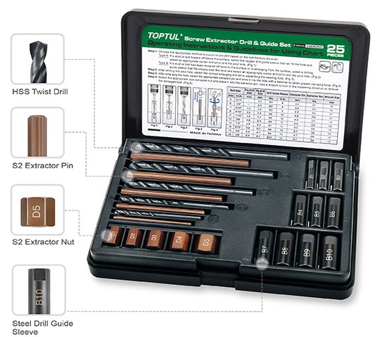 Набор экстракторов и сверл 25 предметов TOPTUL