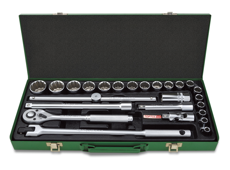 Набор головок и аксессуаров 1/2" 12-гранных 8-32мм, 25 предметов в метал. кейсе TOPTUL GCAD2510 купить в Калининграде и других городах России