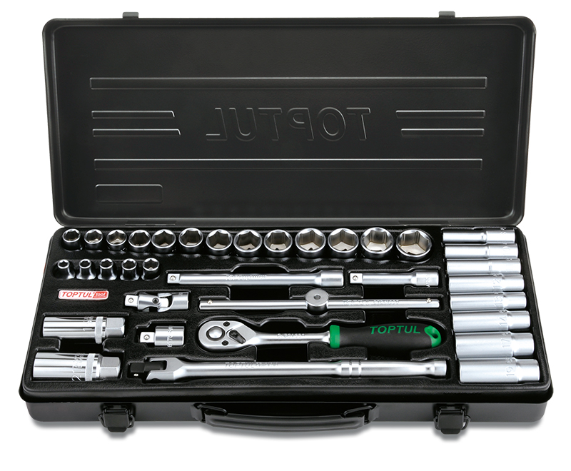 Набор головок и аксессуаров 3/8" 6-гранных 6-24 мм, 35 предметов в метал. кейсе TOPTUL
