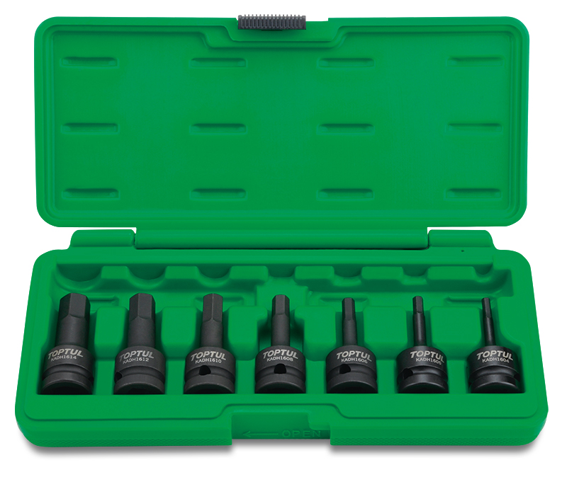 Приобрести Набор ударных шестигранников 1/2" 4-14 мм, 7 предметов TOPTUL от компании Toptul (Тайвань) из раздела Ударные насадки шестигранные HEX по цене 4 256 рублей.